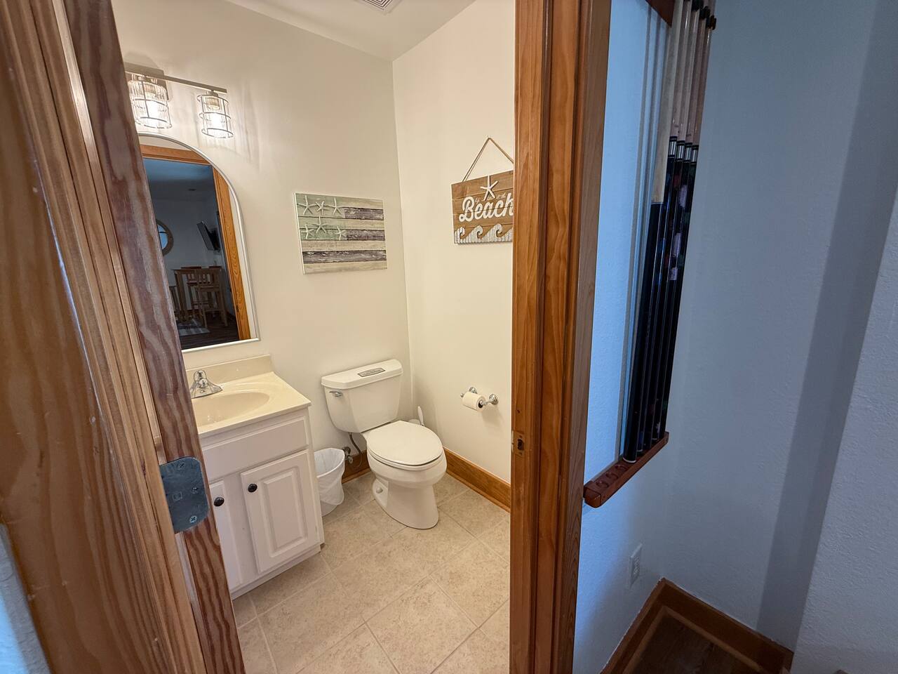 TOP LEVEL: *Open living room and dining area *Master bedroom with king bed + full bathroom with tub/shower combo *Deck access w/ Oceanview *View of the Wright Brothers Memorial *Half bathroom SECOND LEVEL: *Full bathroom with dual vanities and tub/shower combo *Queen bedroom *Queen bedroom with TV *Largest King Suite with dual-vanity bathroom and tub/shower combo GROUND LEVEL: *Stackable washer/dryer *Kitchenette / wet bar with full-size refrigerator *Half bathroom *Pool table *Bar table with seating for three *Full-size Arcade Games *Sleeper couch + TV OUTDOOR SPACE: *Fully-fenced backyard *Outdoor Shower *Fire-pit with seating *Picnic Table